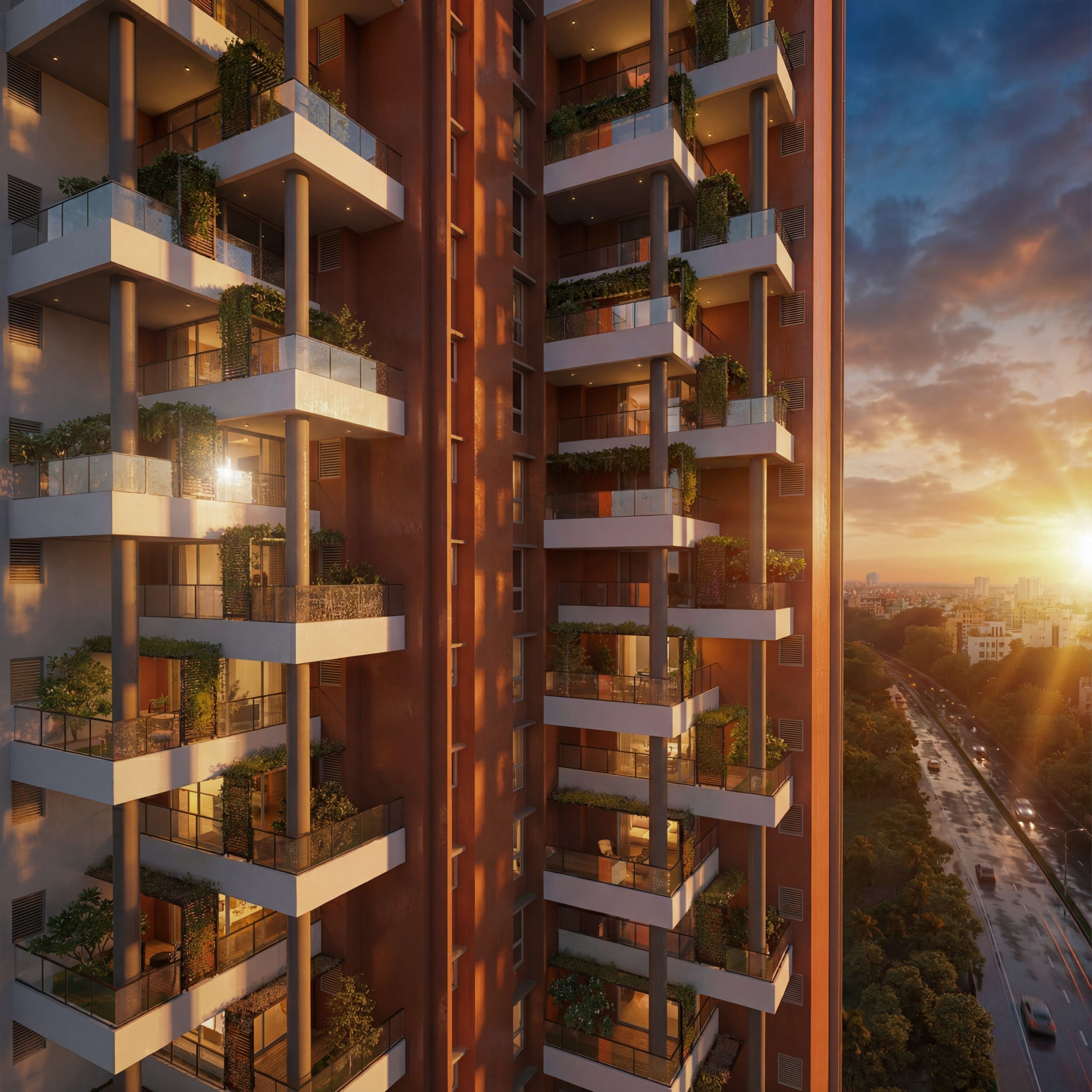 Iconic twin towers with staggered double-height terrace gardens